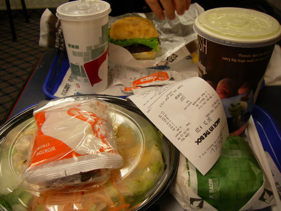 Wir gingen erst mal was bei Jack in the box essen und schauten dann nochmal auf die Messe. Gestern hatten wir einen ganzen Teil der Halle verpasst. Hier stand nun auch Maxon, Nintendo und ein paar andere. Ist schon irre mit welcher Graphik Nintendo punktet, während nebenan Softimage 3D Gesichtsanimationen zeigte oder Crytek die neueste Engine mit allen möglichen Gimmicks, wie physikalisch korrekten Sounds.