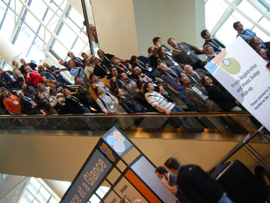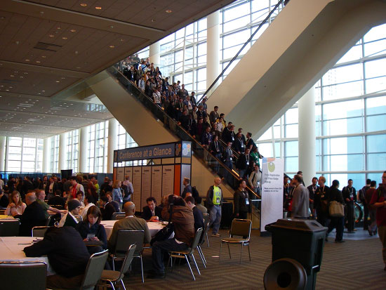 Oben in der 3. Etage des Convention Centers tippte ich ein paar Sachen am Laptop und wartete auf das Treffen. Sie kamen dann wieder. Seit Austin hatte ich sie nicht mehr gesehen, noch ein Programmierer war mit dabei. Ich schwafelte wieder über alles, stellte uns gut und halbgut dar. Irgenein kleiner Projektteil könnte abfallen. Nach dem fast 1 stündigen Treffen schickte ich so auch gleich ’ne email mit der Neuigkeit. Die erste Antwort kam kurz darauf, dass das alles doch nicht so einfach wäre. Ich war darüber etwas aufgebracht. Wenn wir nicht mal einfache kleine Menüsachen machen können, dann wird’s mit ’nem kompletten Projekt erst recht nichts.