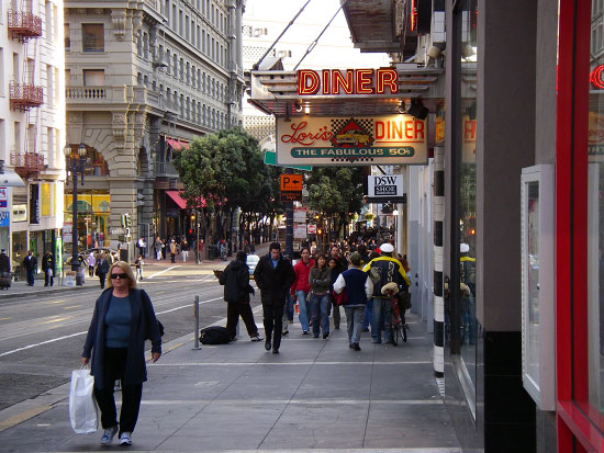 Dann gingen wir mal etwas spazieren. Chinatown lag recht in der Nähe. Zu jetzigen Jahreszeit waren wenige Touristen unterwegs. Wir schlenderten durch die Hauptstraße dort. Ich wollte einen Permilktea, hatte mich geirrt und einen ohne Milch erwischt. Der Apfel-Kokos-Tea war nicht ganz so doll. Am Ende von Chinatown spazierten wir Richtung Transpacific Building. Nach ’nem kurzen Stopp bei Carl’s Jr. o Hamburger per Strohhalm geteilt wurden, gingen wir weiter zum Embarcadero schließlich zum Ferrybuilding Marketplace.