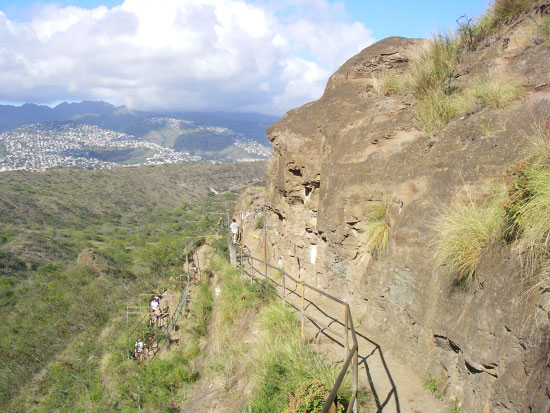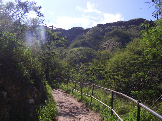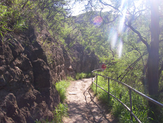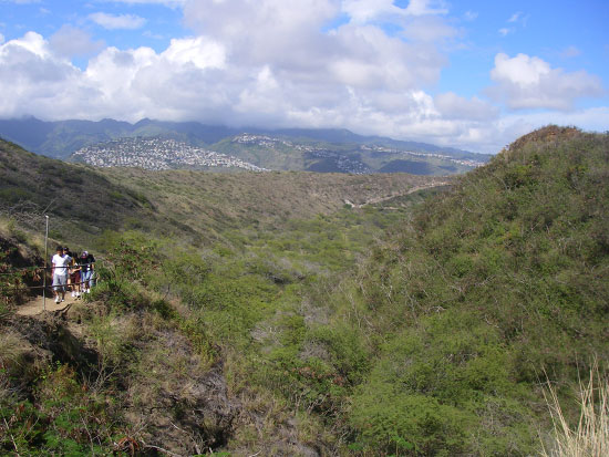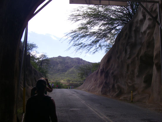 Ein paar Minuten später waren wir am Diamond Head Crater. Viele der Leute im Bus wollte auch dorthin. Nun hieß es wandern. Das Wetter wurde schöner als angesagt. Kaum mehr Wolken – pralle Sonne. Zum Glück hatten wir Sonnencreme dauf.