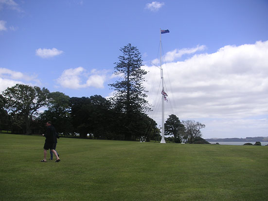Wir trafen uns um 10, genau richtig. Auf dem Weg schnappte ich mir noch ein Brot und Saft zum Frühstück. Dann gab es diverses im Dorf und der „Mall“ zu erledigen. Gegen 11 starteten wir Richtung Waitangi.
