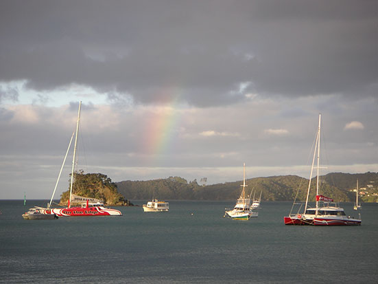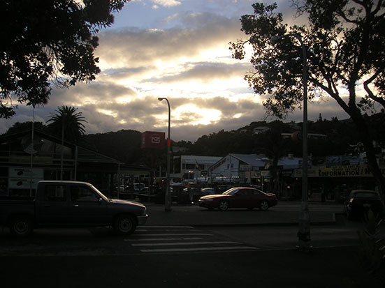 Gegen 16:00 waren wir wieder auf dem Rückweg, genausoschnell. Ich bin das Laufen gewohnt aber die beiden haben das Training noch vor sich. 15-20km am Tag sind in Neuseeland nichts besonderes, wenn man das ein paar mal macht. Sie waren jedenfalls ziemlich fertig, als wir schließlich in Paihia ankamen. Es war bereits 18:30 — eine Stunde später trafen wir uns zum Abendessen.