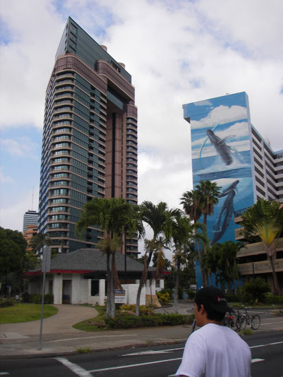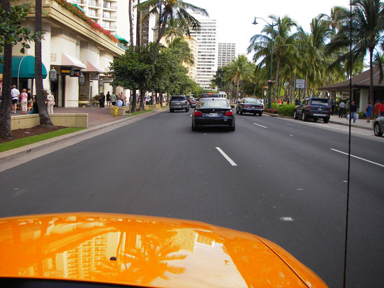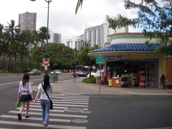 Wieder zurück im Hotel wurde die Wäsche in den Trockner verschoben und wir liefen zur Autovermietung. Alamo befand sich in Waikiki North. Dort standen noch mehr große Hotels und Apartmenthäuser. Das sah nicht so dolle aus. Wir fanden Alamon recht fix.