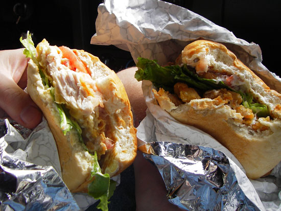 . Ich ief im Hostel an der Northshore an und machte eine Reservierung klar. Nachm Auschecken holte ich den Schlüsel für die Hoteleigene Münzwäsche. Wir wollten nochmal kurz ein paar Sachen waschen. Mit 5 Quarters je Wäsche und Trockner war das günstiger als die offene Wäscherei auf der anderen Straße. Wir gaben auch das Gepäck ab und gingen erst mal Frühstücken. Ich hatte das Lunch Special auf einem Croissant, mein Bruder nahm Jack in the box.