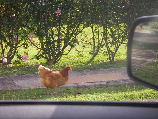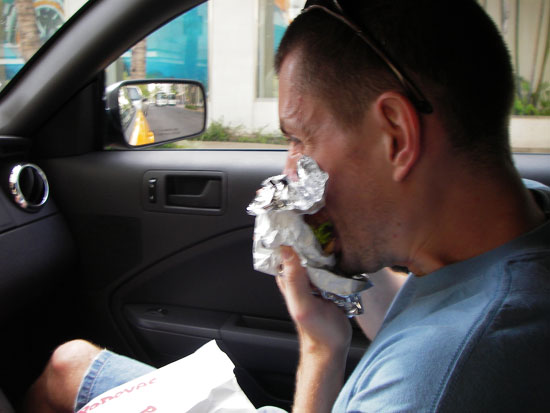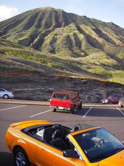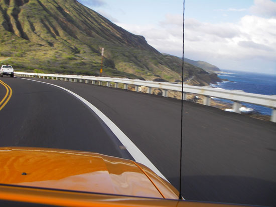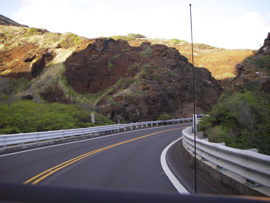 Wir fuhren zuerst zurück zum Hotel. Die Wäsche war trocken. Gepäck eingesackt. Der Platz im kleinen Mustang Kofferraum reichte gerade so. Wir fuhren nochmal zum Geldautomaten; $280 gezogen. Ich holte bei Popeye’s noch zwei Sachen (Shrum / Chicken) für den wiederaufkommenden Hunger. Dann ging es endlich los — raus aus Waikiki.