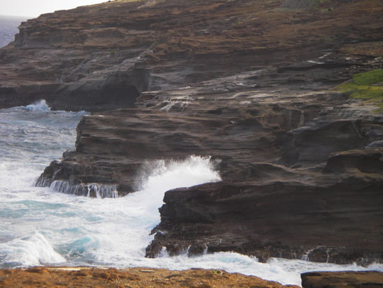 Die … Bay hatte 17:30 schon zu. Wir brauchten zwar keine Park und Eintrittsgebühren zahlen, sahen die schöne Bucht aber auch nur von oben. Weiter zum Blow-Hole. Jetzt ging die Sonne unter und alles wurde dunkler.