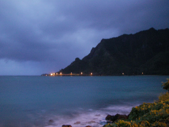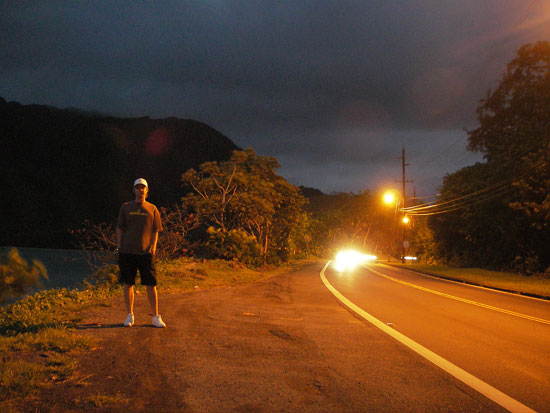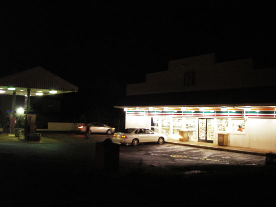 Im ort war nichts mehr los. Selbst bei McDonalds wurde um 22:00 die Küche kalt. Am Ende blieb noch 7-11, wie bei der Wegbeschreibung. Dort hatten sie ein paar nette japanische Sachen, die wir dann im offenen Auto verdrückten. Alles in Butter. Satt und happy und an der North Shore – Super!