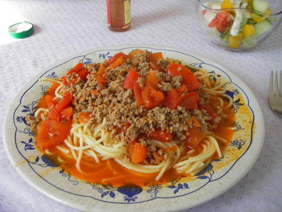 Vor 9 kochte ich mir Reis und ein Thunfisch-Curry. Kokosmilch und Saure Sahne hatte ich zwar nicht. Es schmeckte jedoch auch mit Bambussprossen und Chilli super.