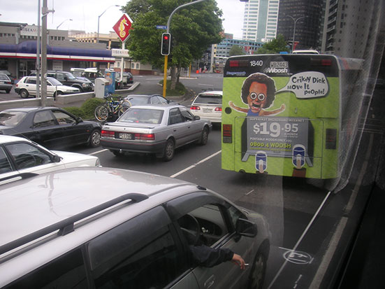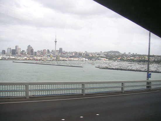 Die Swinging Cow schwingte nach zwei Stunden wieder am Weg. Heute gab’s ein Milcheis. Ich wurde müde, schlief etwas. In Auckland ging’s über die Harbour Bridge (8 Spuren) — genau die Straße entlang, die ich auch mal abknippste. Es liegen wirklich eine Menge Boote an. City of Sails, here I come.