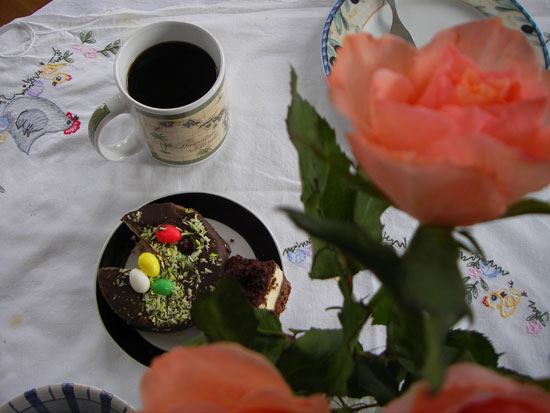 Nachmittags Café-Frühstück mit dm Osterkuchen, den ich im Vita Center gekauft hatte. Danach saß ich wieder am Laptop und las vor mich hin. Nebenbei spielte ich weiter Rocky auf der PSP.