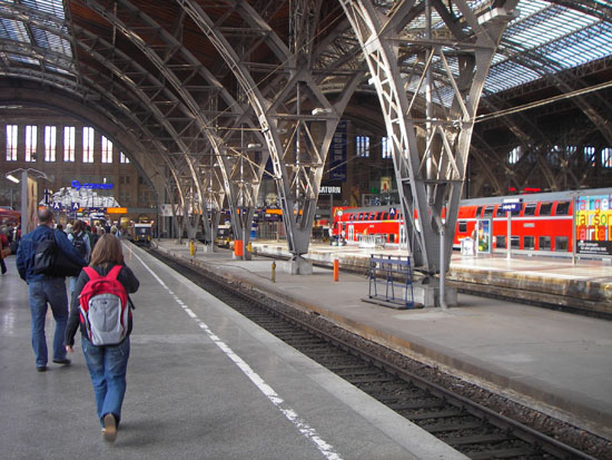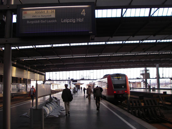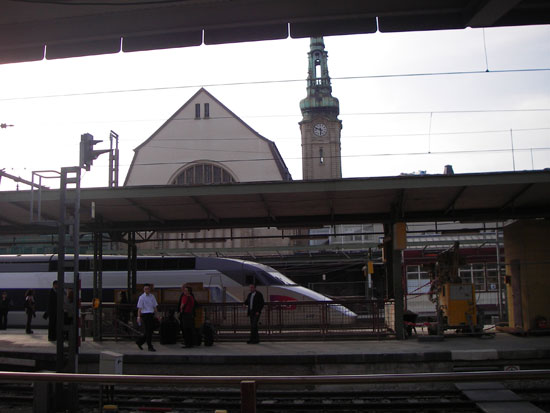 Drei Stunden Schlaf mussten reichen. Nach ’nem guten Frühstück wurde ich zum Bahnhof gefahren. Dieses mal wieder keine Eile. Die erste Standardstrecke führte wieder nach Leipzig. Dort hatte ich eine gute halbe Stunde Aufenthalt, also schaute ich mich etwas um und ging mal vor den Bahnhof.