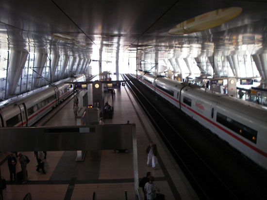 Bei McDonalds holte ich mir ’nen Cheeseburger und Café. Beides verdrückte ich noch bevor der ICE nach Frank-Main Flughafen eintraf. Mit dem iPod vergingen die paar Stunden unterhaltsam. Mit simyo und Handy checkte ich emails und beantwortete sogar ein paar. In meinem Notizbuch skizzierte ich Screens und Designs für ein DS Projekt.