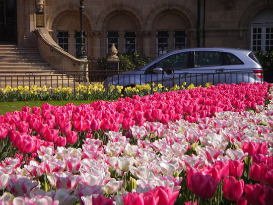 Ich lief erst mal ein paar Straßen quer. Überall blühte es. Tulpenbeete und auch die Bäume am Straßenrand. Dann spazierte ich über die Brücke zur Altstadt. Eine Stadtrundfahrt dauert 50 min, vielleicht schaffte ich das noch irgendwann.