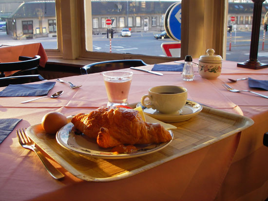 Nach um 7 runter in die erste Etage. Das Frühstück war super! Eine große Auswahl, frische Bröchen und Croissants. Ich aß mich ordentlich satt. Ein richtiges Abendbrot hatte ich ja gestern nicht. Gegen 8 lag ich dann im Bett. Kaum 4 Stunden Schlaf werden es nur – den Wecker stellte ich auf 5 vor 12.