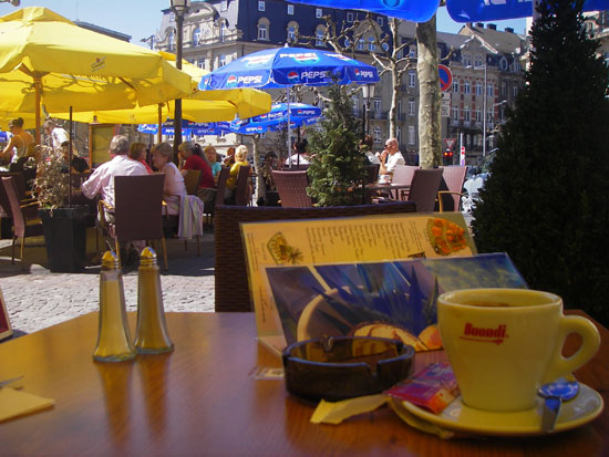 In Frankfurt spaziere ich dann mal vorm bahnhof herum, rief zu Hause an und genehmigte mir bei Sbarro einen guten Café und Kakao-Ding.
