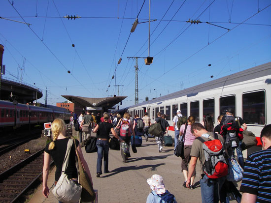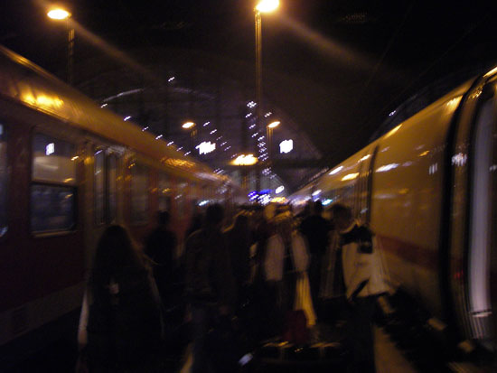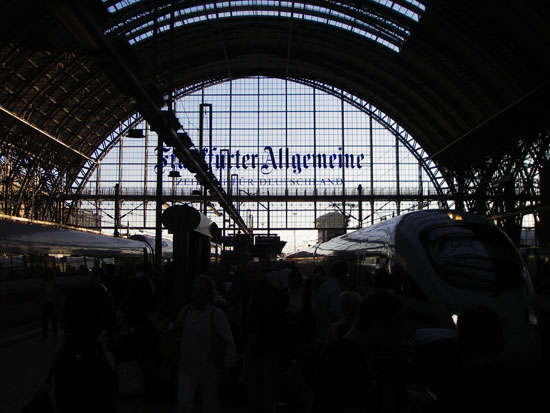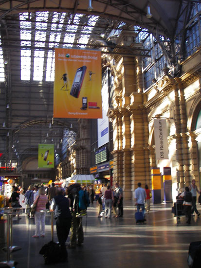 In Koblenz kaufte ich mir ’ne warme Wurst aus dem Automaten. Richtig warm war sie nicht aber doch ganz OK. Der Zug nach Frankfurt hatte 20 Minuten Verspätung. Der Schaffner zog schon Sorgenfalten, dass ich meine bahn nach Leipzig nicht schaffen würde. Ich hatte aber eine Stunde Aufenthalt im Kopf und somit sollte alles klappen.