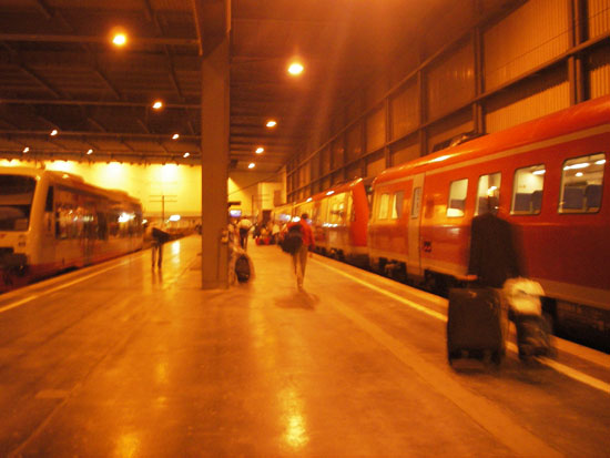 Auf dem Bahnhof hatte ich genügend Zeit und holte mir ein Sandwhich + Getränke. Die Flugzeuge flogen direkt über dem Bahnsteig ein, warfen so ihren Schatten. Ich versuchte ein Bild zu machen, verpasste es aber. Der Zug stand schon da – auf ging die Fahrt.