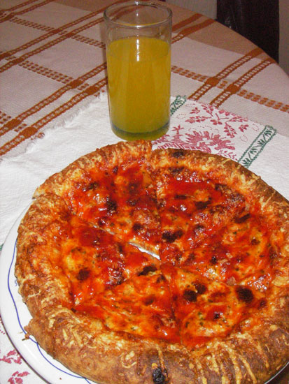Zum Abendessen gab’s ’ne Pizza. Danach schaute ich mir die Schiffstaufe der Aida diva an. Schönes Feuerwerk.