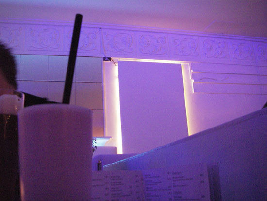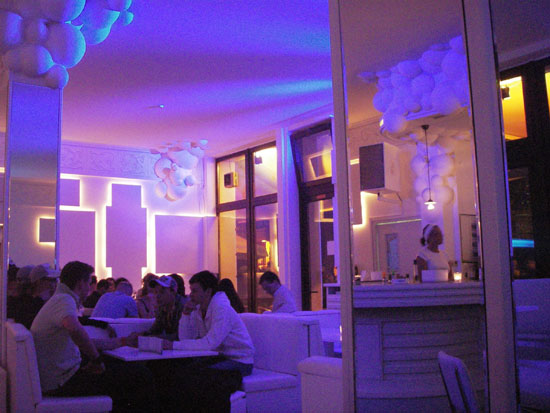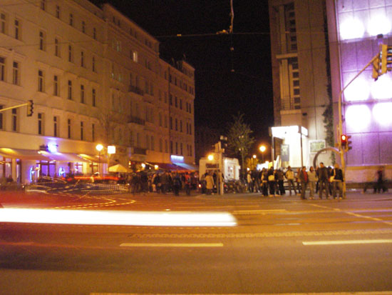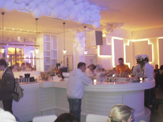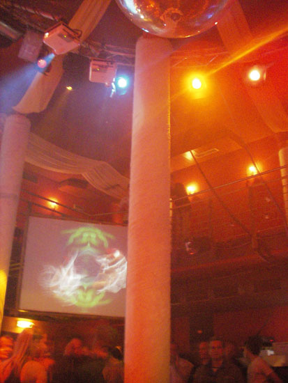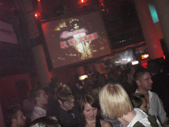 Zuerst holte wir uns die Tickets vor der „Milchbar“. €12 pro Nase, dann ein Drink in der Milchbar. Ich hatte einen Milkshake mit Alkohol. „Bloody Pina“ hieß der und war mit Blutorange und Rum geschüttelt — sehr gut. Draussen gab’s ein kurzes Feuerwerk und dann brachen wir auf.