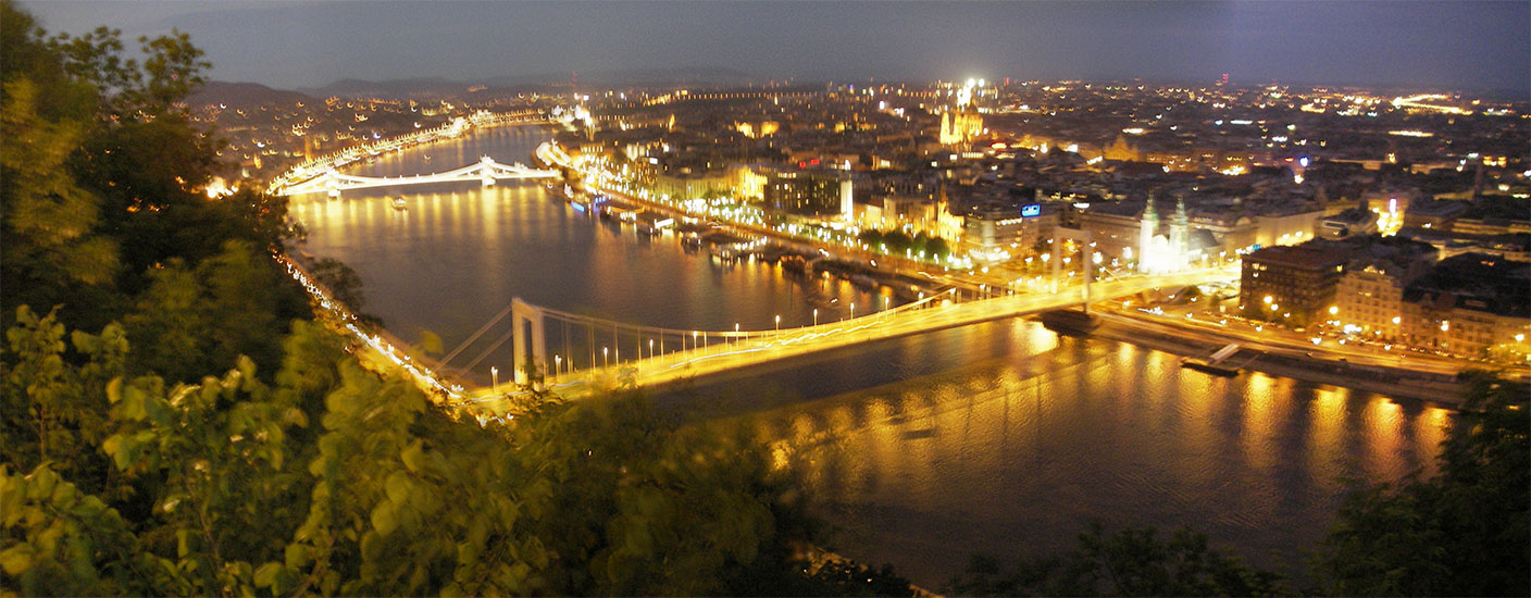 Über die Kettenbrücke fand ich zur anderen Donauseite. In Richtung Süden war weniger los. Nu rein paar Hotels, sodass ich über die weiße Erzsébet Brücke wieder nach Buda lief. Inzwischen wurde es dunkel. Das Citadel sollte auch ein guter Aussichtspunkt sein. Mit Glockeschlag 20:00 war ich oben und schoss noch mehr Bilder. Eine bessere Camera als mit ISO 200 würde für weniger verwackelte sorgen.