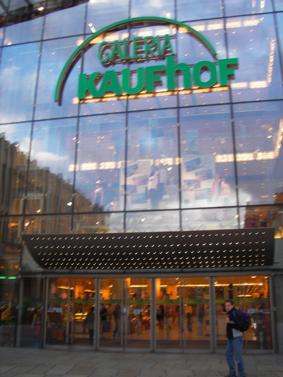 In der Galleria Kaufhof holte ich ein unliniertes Notizbuch, wie ich es auch gern nehme. Was zum malen und eher ein Verlegenheitsgeschenk. Die Verkäuferin verpackte das wenig wertvolle Stück kunstvoll mit einer großen Schleife. Mir war der Aufwand unangemessen aber sie bestand drauf. Schließlich bekomme ich das ja geschenkt.
