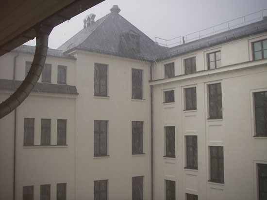 Es wurde eine Zahlungserinnerung nach London geschickt. Mich überraschte ein wenig, dass sie sich dieses Mal nicht gleich herausreden wollten. Es klingelte, Besuch kündigte sich an aber ich konnte weiterarbeiten. Der ex-Praktikumsbetreuer schaute wieder vorbei. Draußen wurde das Wetter unwetterlich. Hagelkörner und Sturm. Nette Show.