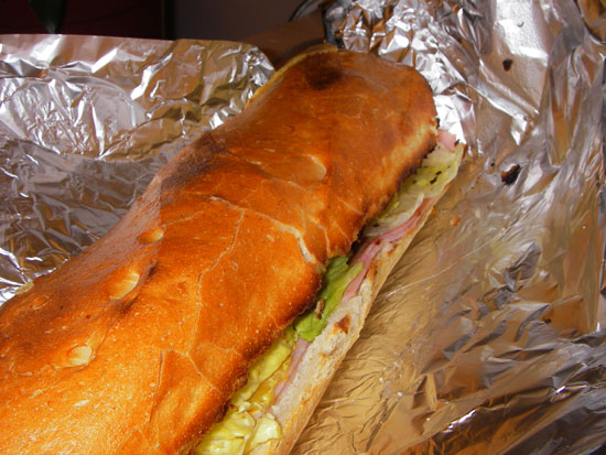 Gegen 21:00 hatte ich mal Hunger. Ich fand etwas Klimpergeld in einer Tüte und holte mir ein Baguette Hawaii. Das Teil aß ich in einem Rutsch.