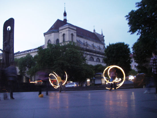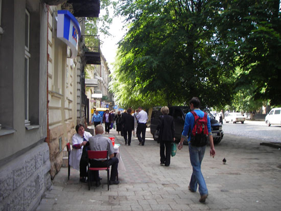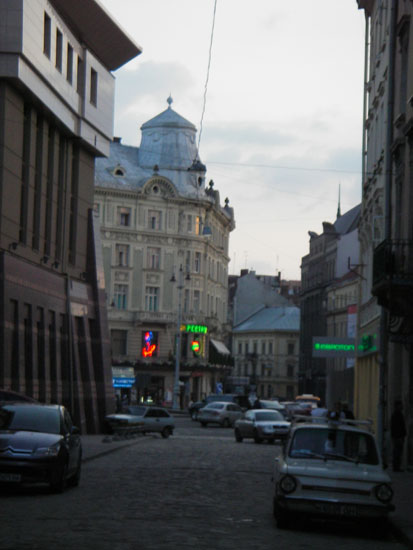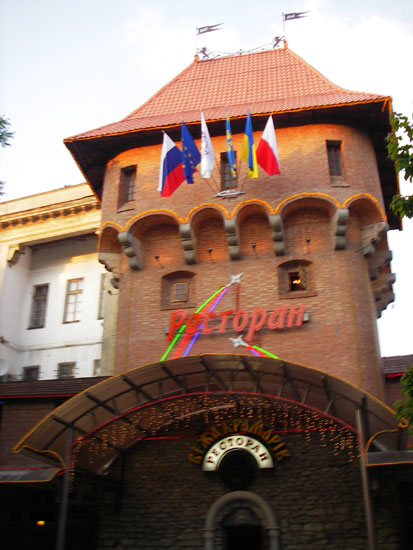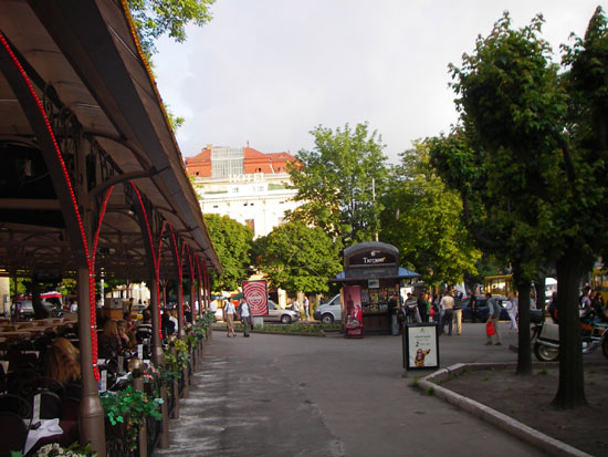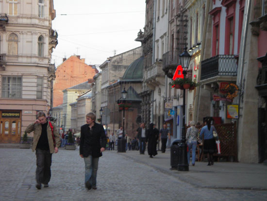 Ich finde wieder zurück zum Hostel, Der London Besuch will später kommen. Gehe mit ’nem Texaner in die Innenstadt. Dort sieht alles viel besser aus und so gefällt mir L’viv nun doch ganz gut. Wir setzen uns in ein Café. Leichte Enttäuschung. Der Orangensaft hat ’nen deutschen Preis, der Cappuccino kommt aus der Instant-Tüte. Daneben singt eine Russin „My heart must go on“ und andere Schnulzen. Dem Amerikaner zieht’s die Schuhe aus, ich finde, das passt hierher.