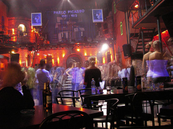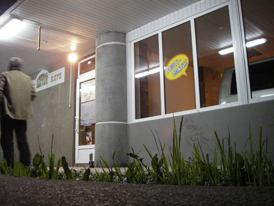 Abends raffe ich mich dennoch auf. Ausgehen mit 2 Amerikanerinen, 2 Kanadiern. Zu Fünft im Taxi. Da passt nichts mehr sonst rein, selbst wenn wir mal ’nen großen Wolga erwischen. Erst im „Leroy“ – dort war der Eintritt aber mit 50 UAs (ca. €8)manchen zu heftig. Dann eine Fahrt zum Picasso. Ziemlich lahm zum Freitag. Wenn L’viv als „Krakow on Speed“ vom Hostelnorweger angepriesen wurde, dann weiß ich nicht was Krakau dann sein soll. Soo müde immer noch, dass ich mit vollem Bewusstsein beim Bilder anschauen fast einschlief. Sekundenschlaf, bei dem mir fast die Camera aus der Hand fiel. Es wird aber langsam besser. Ein paar Ukrainer führten uns noch neben den Metro Club. Das war mehr eine Lounge. Ich kaufte ein Sandwhich für 10 und hatte jetzt mal was Richtiges im Magen. Was für ein Unterschied.